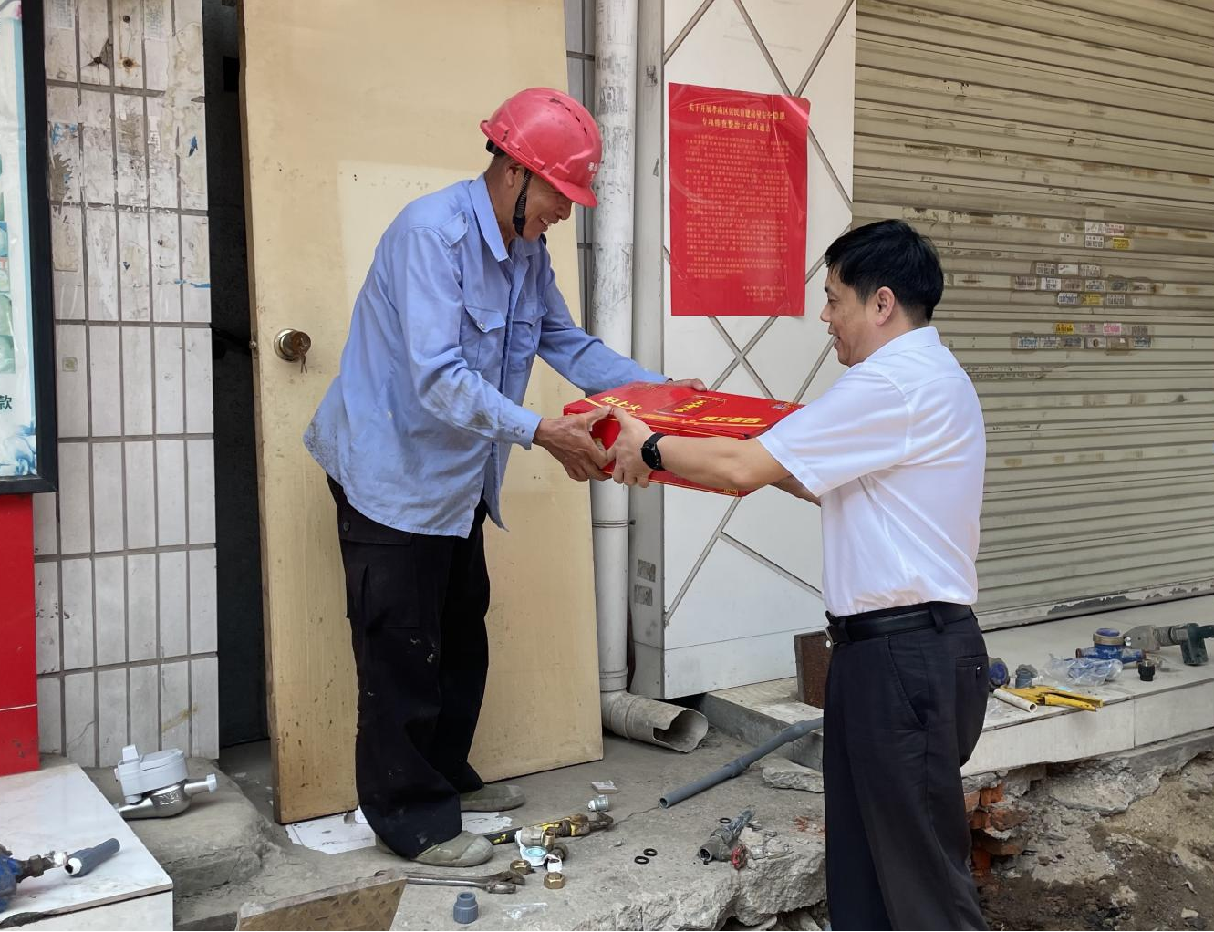 嚴書高一行看望慰問了奮戰(zhàn)在高溫工作崗位上的一線勞動者,為他們送去了防暑降溫物品,并叮囑大家注意防暑降溫,確保自身健康安全。同時,要求自來水公司要切實關心職工生產生活條件,優(yōu)化施工安排,科學確定高溫環(huán)境下作息時間,強化現(xiàn)場管理,認真落實防暑降溫措施,嚴格執(zhí)行各項規(guī)章制度,確保平安度夏、安全生產。