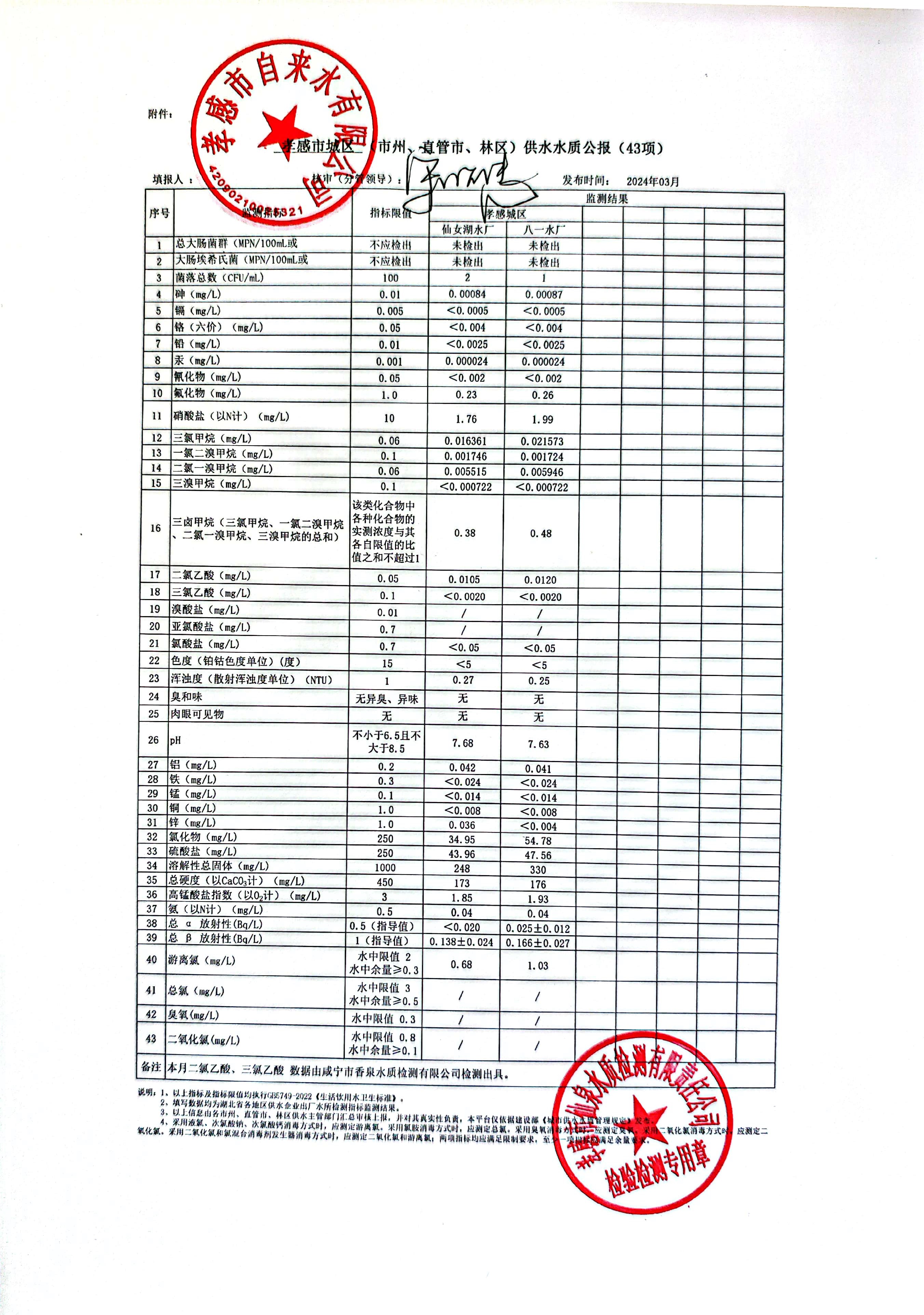 2024年3月水質(zhì)報(bào)告
