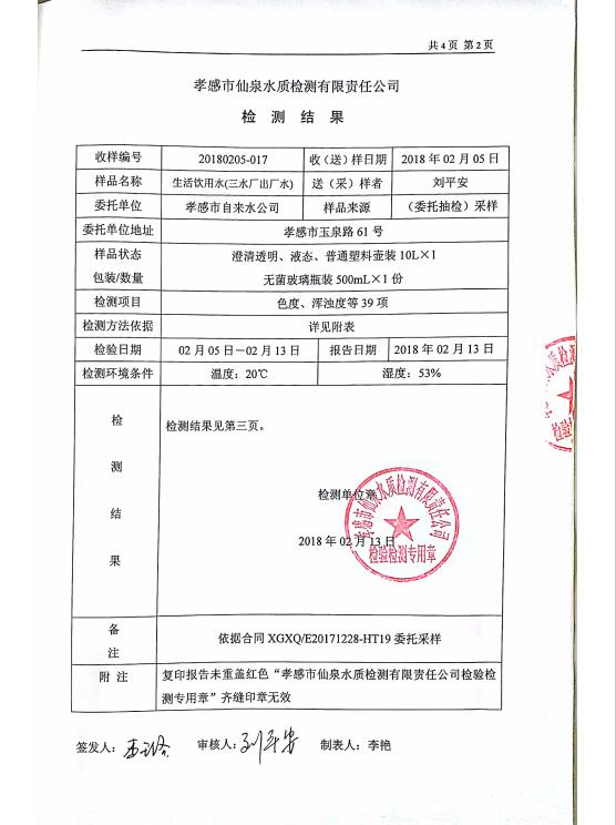 2018年2月水質(zhì)報(bào)告