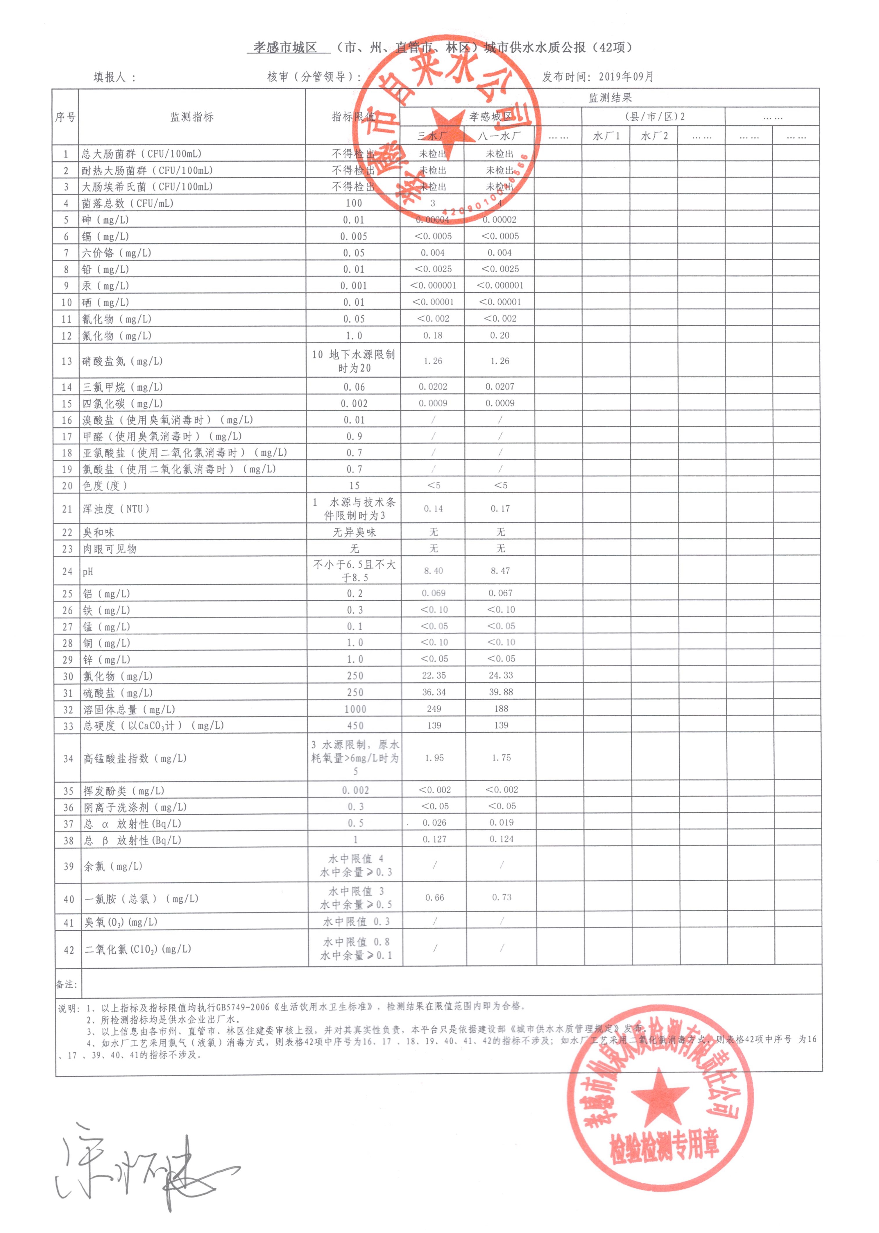 2019年9月水質(zhì)報告