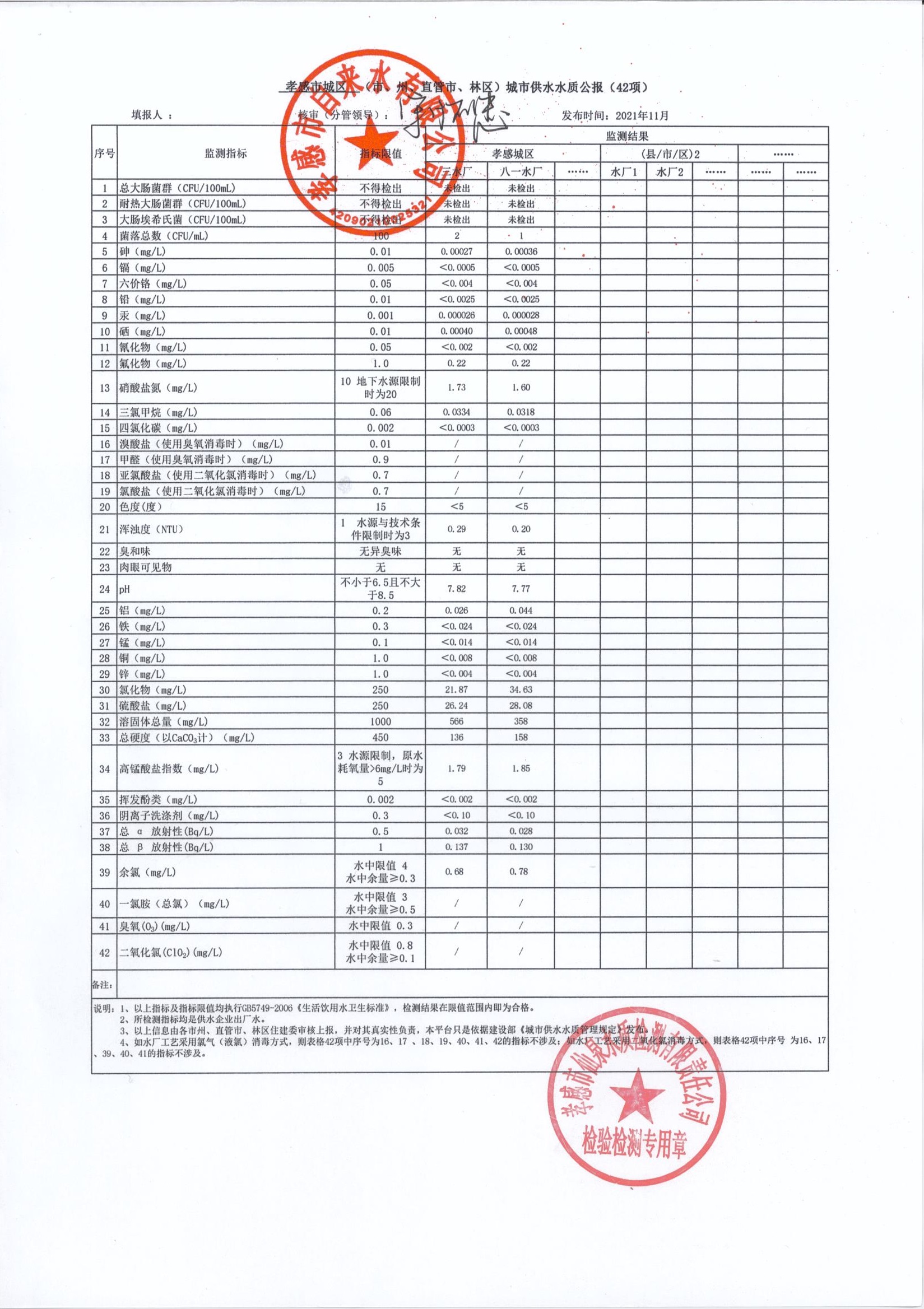 2021年11月水質(zhì)報(bào)告